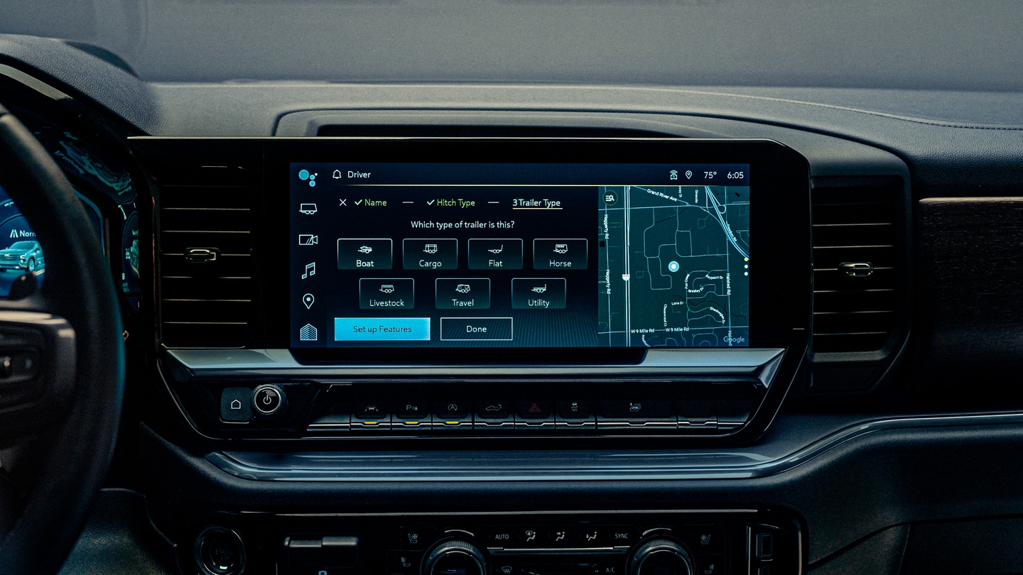Additional technology features include wireless charging, multiple USB ports, and a 120-volt power outlet for charging tools or devices. The available 15-inch diagonal Head-Up Display projects important information directly into your line of sight.
