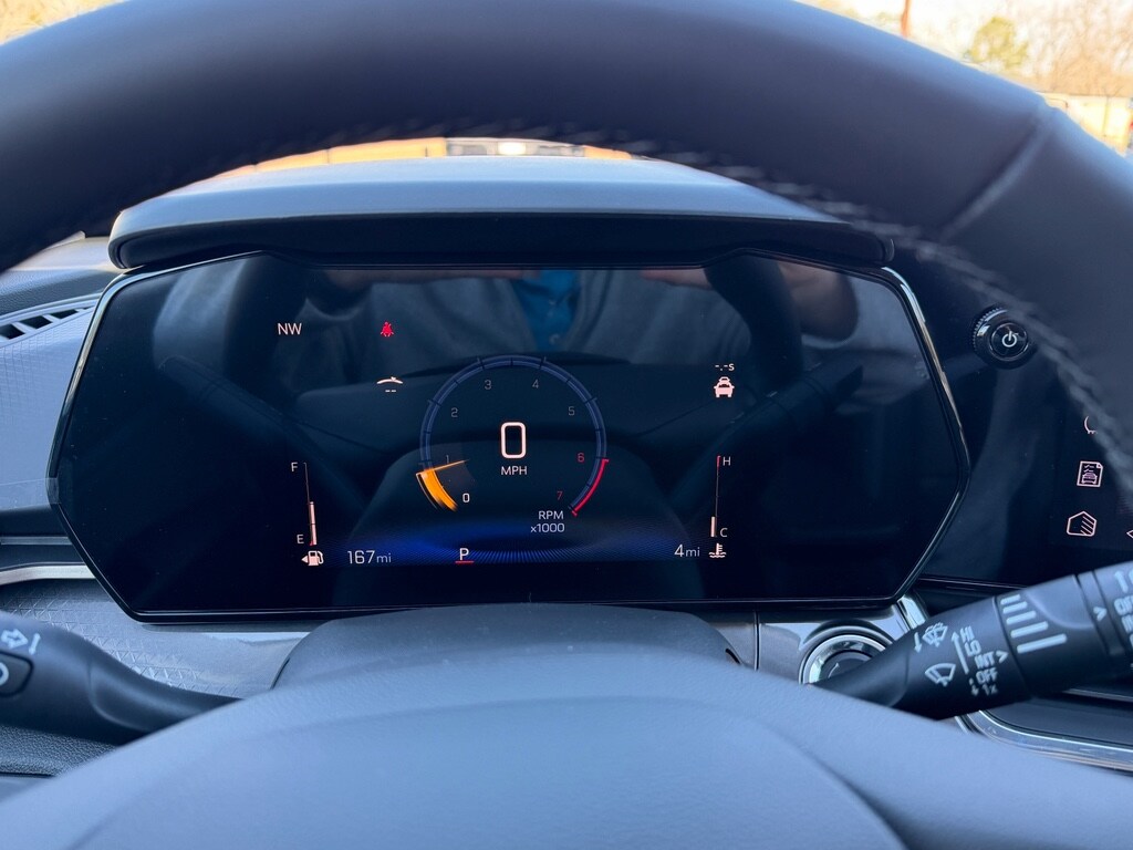 - Provides key vehicle information, such as vehicle speed, fuel range, average fuel economy, tire pressure, oil life, trip odometer and warning icons